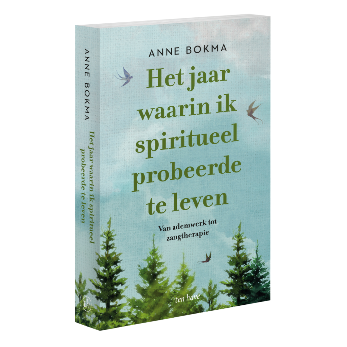 De Canadese journalist Anne Bokma neemt in Het jaar waarin ik spiritueel probeerde te leven een jaar lang iedere maand een andere spirituele richting onder de loep. Zo probeert ze te mediteren met Headspace, doet ze aan yoga met geiten, gaat ze bosbaden, kiest ze alvast een doodskist uit en probeert ze magic mushrooms. Bokma plaatst haar nieuwe spirituele ervaringen in haar persoonlijke levensgeschiedenis. Het resultaat is een boek met een warme vertelstem, geschreven met veel zelfspot en de nodige humor.
