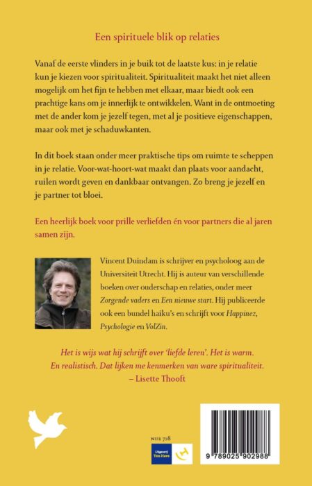 Vanaf de eerste vlinders in je buik tot de laatste kus: in je relatie kun je kiezen voor spiritualiteit. Spiritualiteit maakt het niet alleen mogelijk om het fijn te hebben met elkaar, maar biedt ook een prachtige kans om je innerlijk te ontwikkelen. Want in de ontmoeting met de ander kom je jezelf tegen, met al je positieve eigenschappen, maar ook met je schaduwkanten.